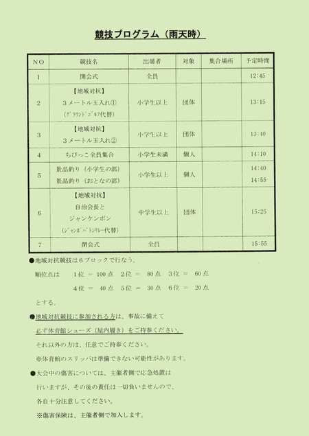 2025年11月2日 / 最終更新日時 : 2025年11月2日 officer 体育協会 イベントアルバム 「区民体育祭」2025 雨天の予報で急遽体育館で実施された区民体育祭! ←クリック 区民体育祭 プログラム FacebookXHatenaCopy